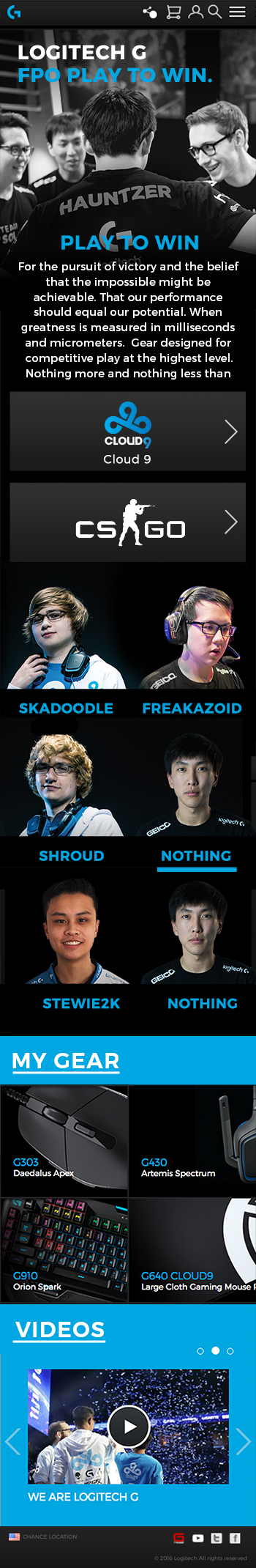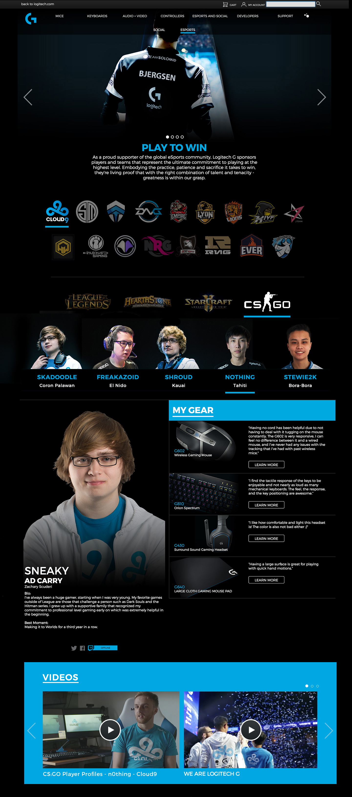 Logitech Gaming and E-Sports go hand in hand. Sponsoring the best teams and using the best gear. I contributed in the design of the landing page, highlighting multiple tiers of teams and showcasing what each player uses and who they are. Fans can visit and learn more about their favorite E-Sports player.